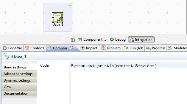 Vamos dar um exemplo: Adicione um componente tJava ao job e acrescente o seguinte código ao mesmo: