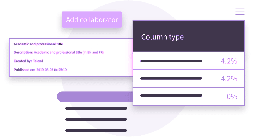 O Talend Data Inventory é uma solução leve construída para assegurar a qualidade de dados nas aplicações do Talend Cloud. Com ferramentas simples para gestão de dados e metadados, todos os consumidores e cientistas de dados poderão encontrar facilmente e aprimorar os dados que necessitam em um ambiente compartilhado e colaborativo.